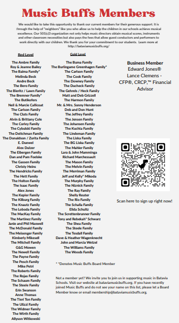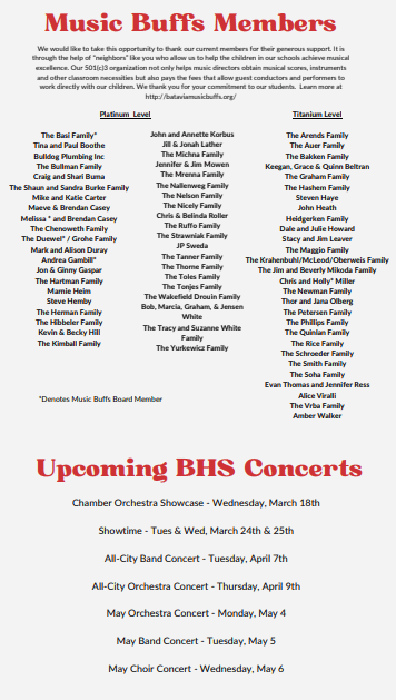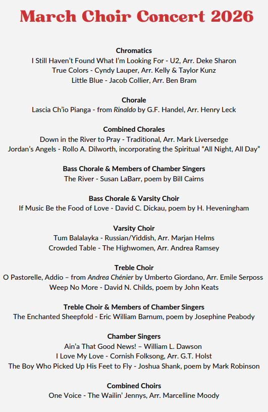 Calendar for BHS Choir Concert 2026